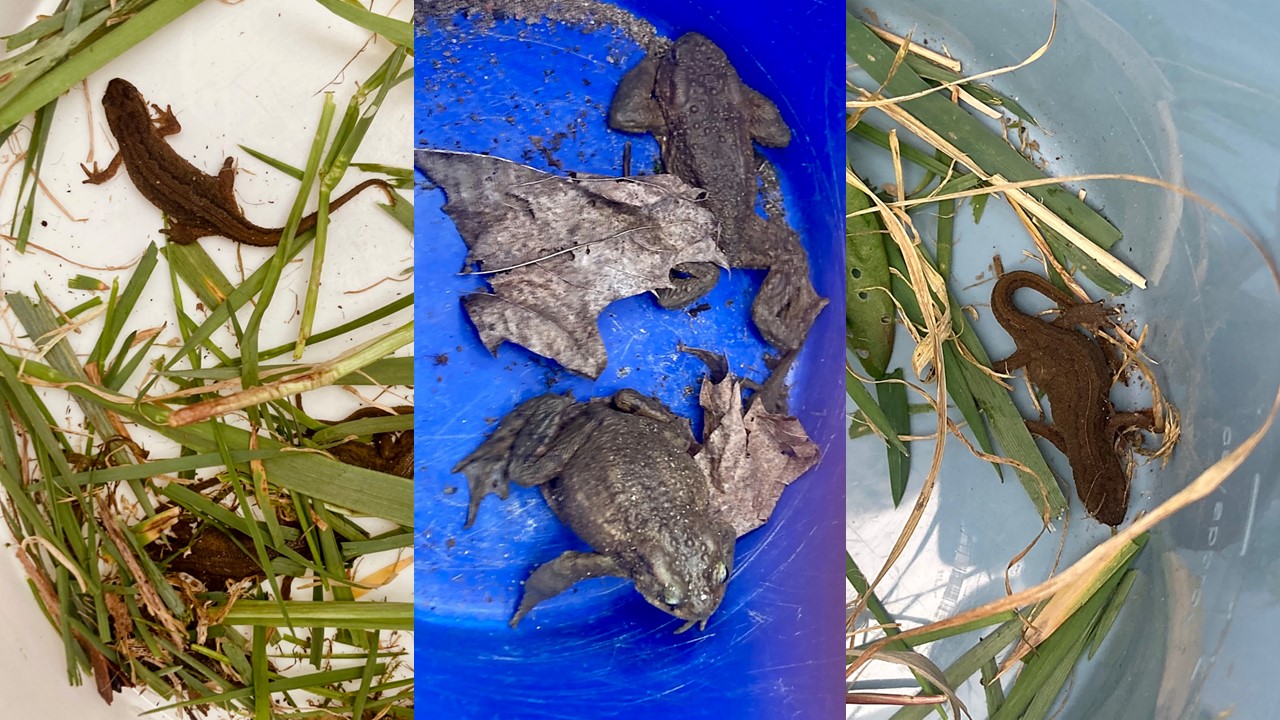 Von den Kröten waren wir an diesem Tag etwas enttäuscht. In den letzten Jahren haben wir deutlich mehr Kröten und Molchen helfen können. Dennoch war es ein super Tag. Zum Glück fanden die anderen Klassen in den anderen Wochen ein paar mehr Molche und Kröten. Einige sieht man auf dem Foto.